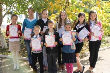 1-е место. Гусарова Дарья (3-В класс) –аппликация- заняла 3-е место,Владик Худиенко (3-В класс) - 3-е место. Молодцы! Во всех номинациях мы заняли призовые места! На снимке победители конкурса: Середа Юлия, Колещак Яна, Гришкин Артём, Афанасенко Валя, Гусарова Даша, Москалёва Евгения, Закерьяева Эмине, Рыжанок Екатерина. | |